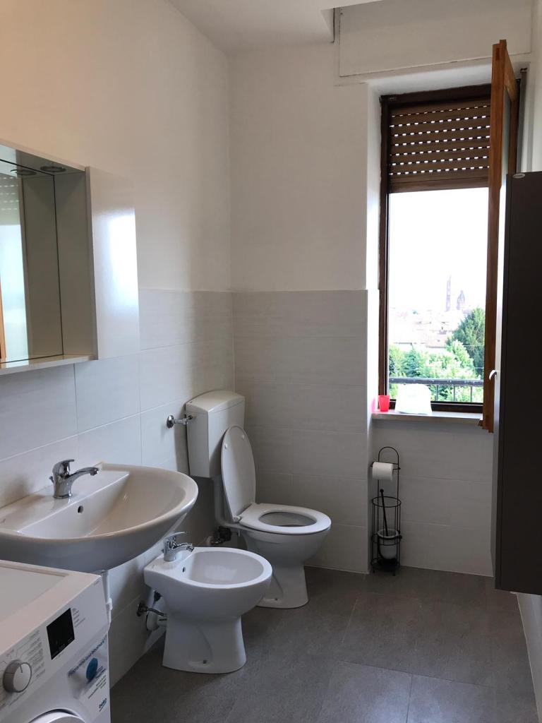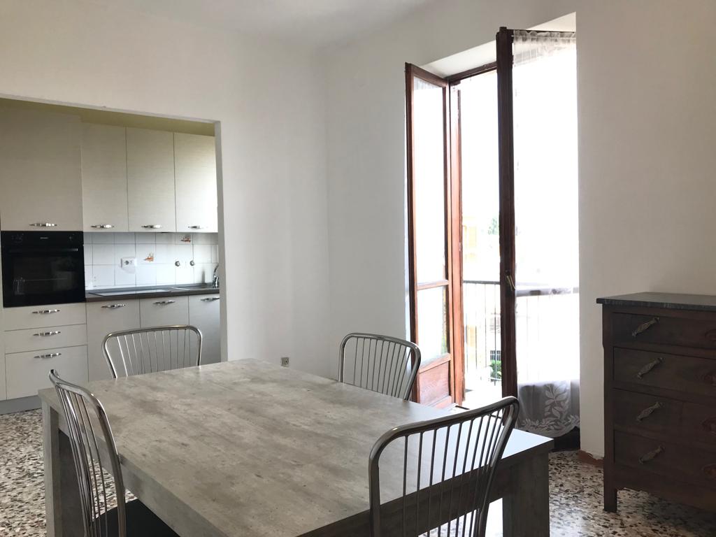 Large bright rooms with panoramic balcony in the center of Bra (in via Ospedale n°24), with large living room and kitchen. Renovated in July 2019. New bathroom and kitchen and furniture. One covered parking space available.